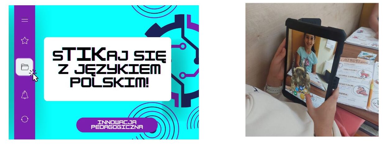 Innowacja „sTIKaj się z językiem polskim!” jest związana z zauważoną koniecznością zintensyfikowania pracy nad kompetencjami przyszłości oraz szerszego włączania nowoczesnych i innowacyjnych metod do nauczania języka polskiego. Obejmuje stosowanie narzędzi TIK w różnych obszarach działalności w ramach obowiązkowych lekcji języka polskiego: aktywizowania uczniów podczas lekcji (m.in. Wordwall, LearningApps, Nearpod, kody QR, Snotki, Edpuzzle, Quiver, karty AR, narzędzia Google, narzędzia sztucznej inteligencji), dokonywania przekładu intersemiotycznego (m.in. generator kart postaci, generator chmur wyrazów, generator memów, generator pasków wiadomości, generator SMS-ów, Canva), sprawdzania stopnia opanowania wiadomości i umiejętności (m.in. Blooket, Kahoot, Baamboozle, Quizziz), prezentowania nowych wiadomości (m.in. Canva, Genial.ly, MyHeritage, SpeakPic, Voki).